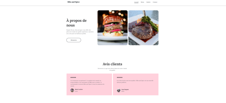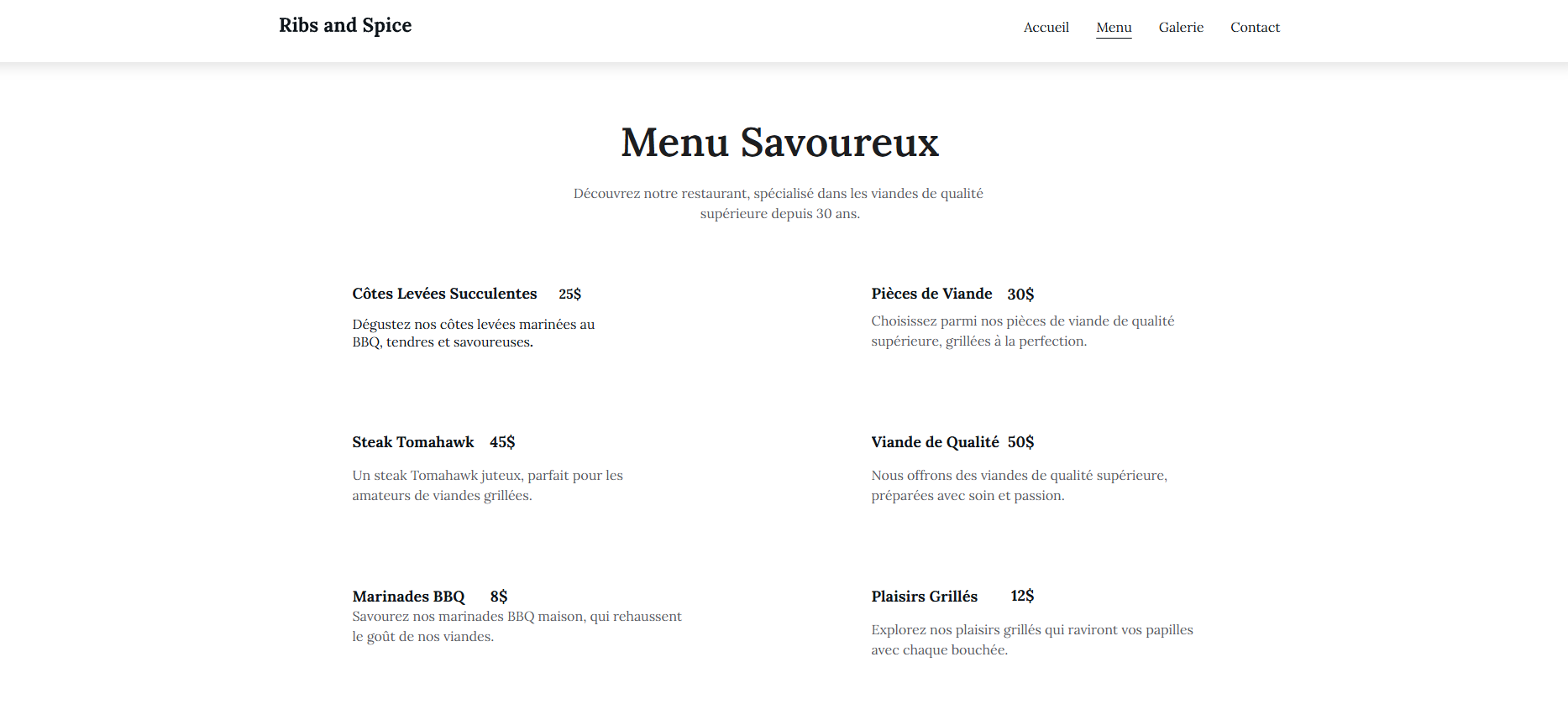 Voici nos réalisations Notre site : Café du Quartier : Sport 3600 (entreprise fictive) : Boulangerie pâtisserie Bernillon : Ribs and Spices (entreprise fictive) :